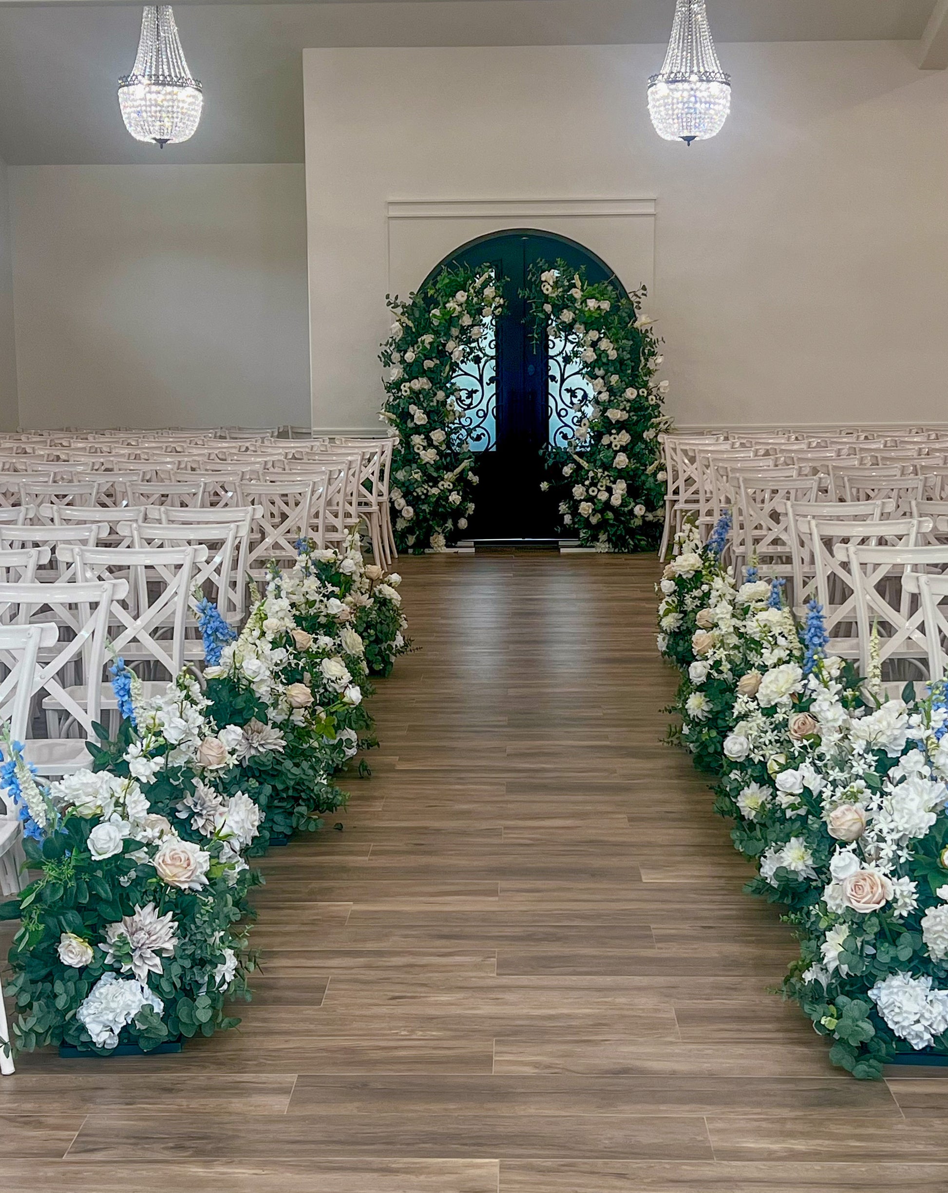 These aisle blooms are created to seamlessly coordinate with the Garden Arch, Timeless Elegance Arch or the Something Blue arch.